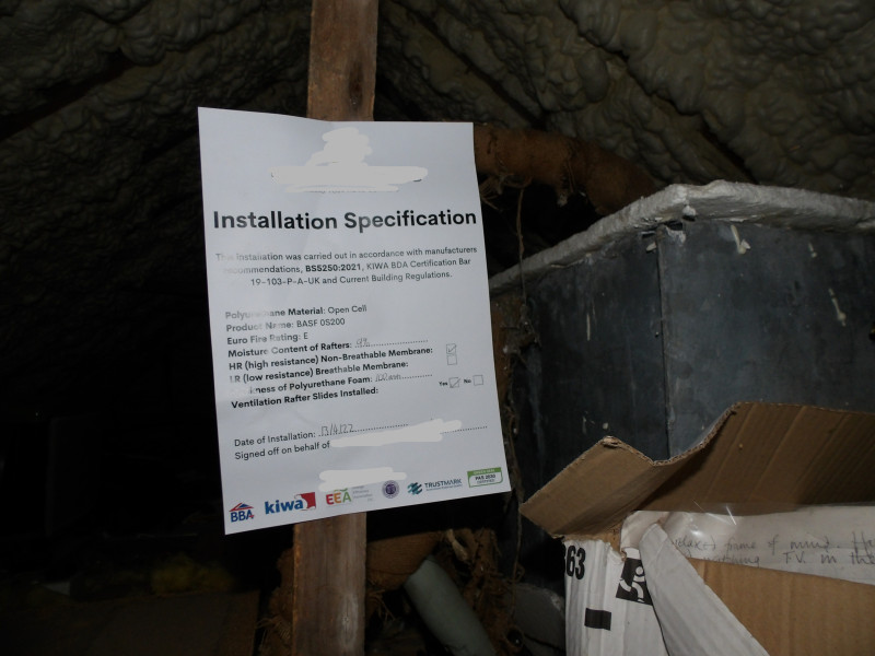 In this case, documentation confirmed that the spray foam product itself was BBA certified (Walltite). However, certification of the product is not the same as certification of the installation.