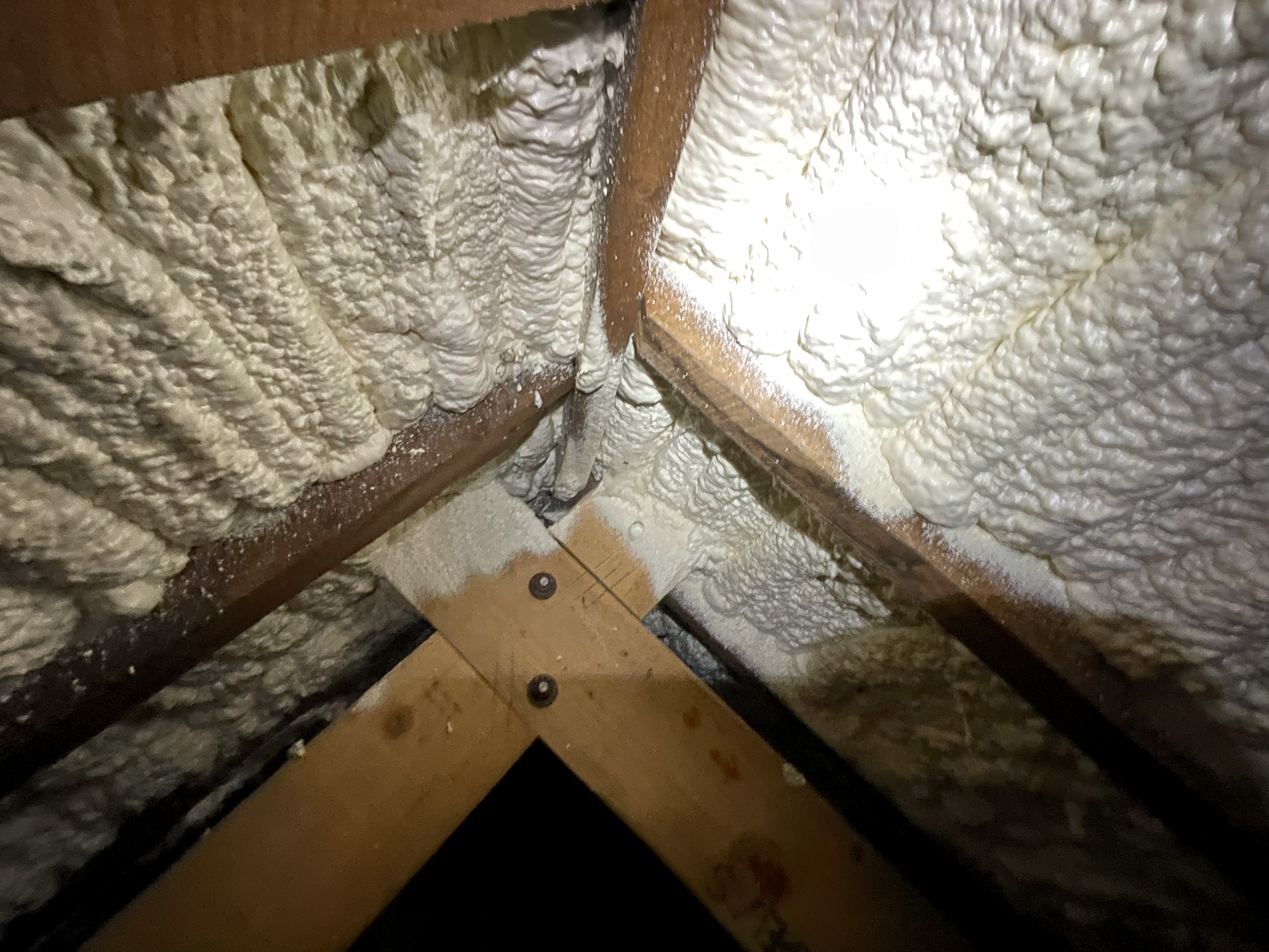 While the roof structure is currently performing, the presence of spray foam has significantly increased the long-term maintenance cost and risk profile of the property.